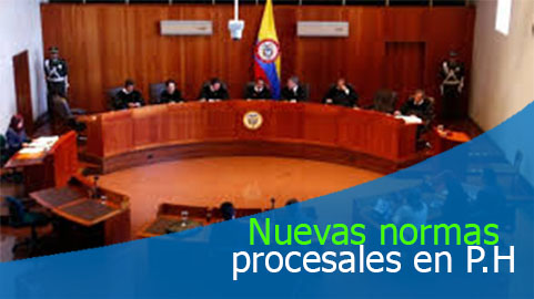 El nuevo Código General del Proceso, contenido en la ley 1564 de 2012, no podía ser ajeno al sistema de propiedad horizontal, cuya ley también regula asuntos procesales fijando los mecanismos para determinar la legalidad de las decisiones de asambleas o aquellos a que deben acudir sus propietarios y órganos administrativos para solucionar sus conflictos. En tal sentido, el nuevo código derogó expresamente, a través de su artículo 626, el artículo 49 inciso 2º, el parágrafo 3º del artículo 58, al igual que la expresión “Será aplicable para efectos del presente artículo, el procedimiento consagrado en el artículo 194 del Código de Comercio o en las normas que lo modifiquen, adicionen o complementen”, del artículo 62 inciso 2º de la Ley 675 de 2001.